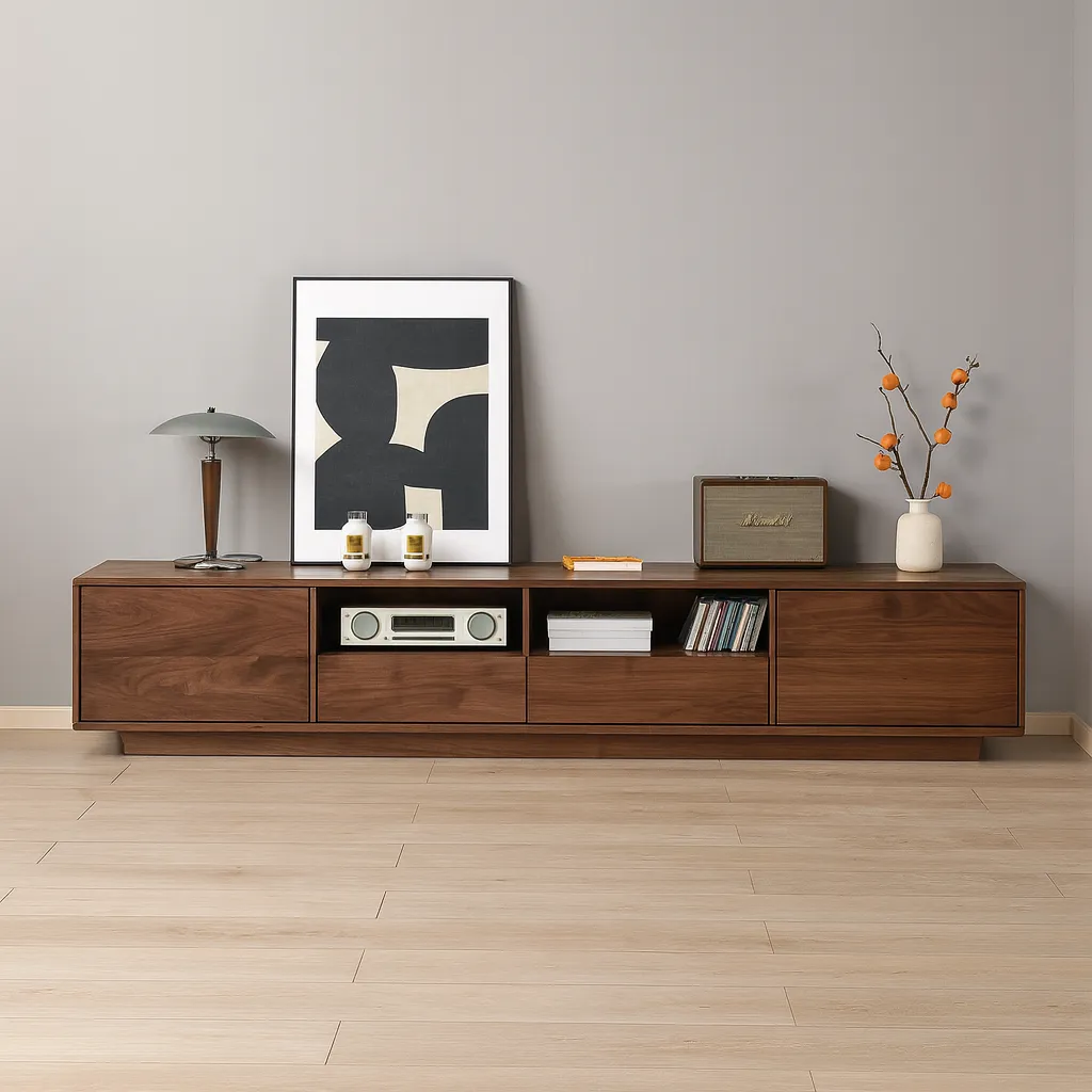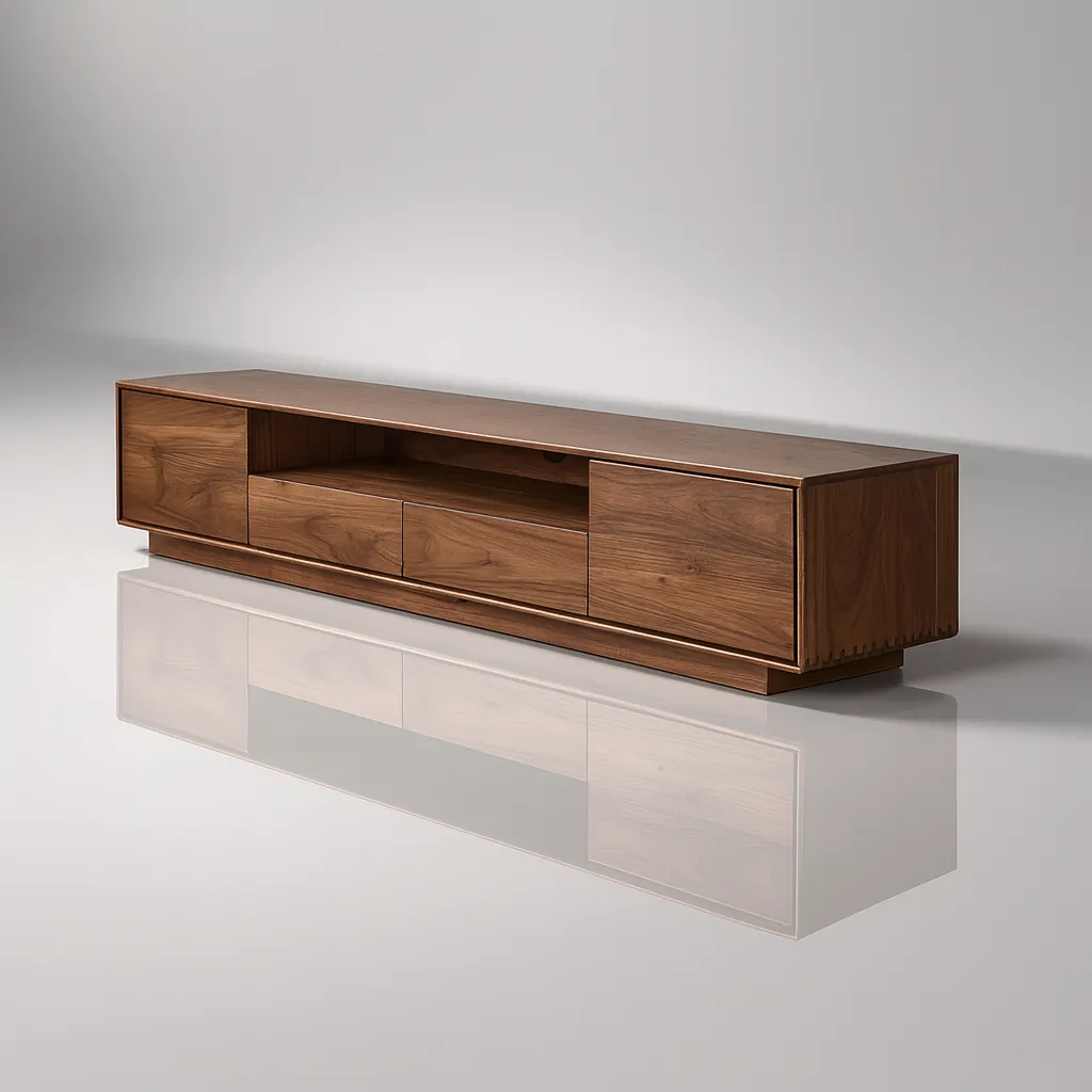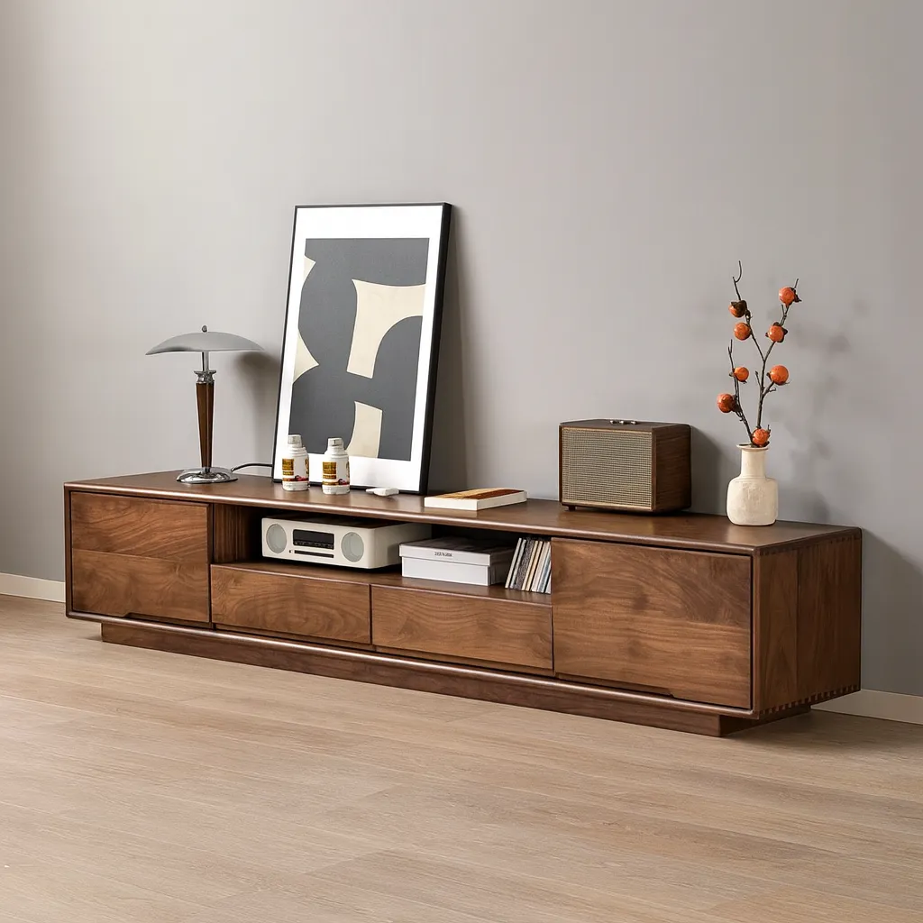 Modern Wooden TV Cabinet With Drawers And Open Shelf